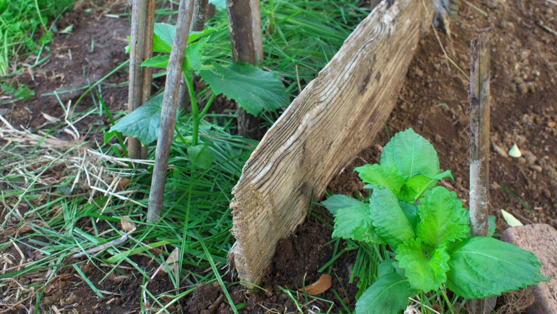 このところ、どうも後手に回ることが多く、既報のオクラのポット育苗は、双葉を出したもののナメゴンに攻撃されてしまい全滅、仕切り直しとなりました。巷ではそろそろキュウリも収穫時期に入っているのですが、自分はああだこうだと理由をつけて手つかずでした。たまたま近所の農協マーケット(セレサ)に行ったので、接ぎ木ではありませんが苗を購入しました。完全に周回遅れですね。普通の苗なので連作を恐れて、フェンス側ではなく畝の反対側に植えましたが、ムラサキシキブの根本で、あまり野菜には使われていない一角です。実験もあってキュウリとシソ(こちらは木の下の半日陰)を植えてみました。下草をすべて刈ってしまったので、風通しが良くなりすぎたので、キュウリとシソの間に杉板を入れて微気象を整えました。株が独り立ちしたら板を外して風を通す予定です。畝の中央部はタカナを収穫したので(不作…)そのあとに夏野菜のモロヘイヤとエンサイ(このポット育苗もナメゴンにより全滅)の苗を遅ればせながら入手して植えました。夏はこれらと付き合うつもりですが、ここ数年、土の状態が疲弊気味のようで芳しくありません。暑さはもとより、安定しない環境下で野菜たちが果たして首尾よく育つかどうか心配です。
