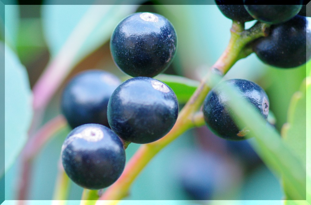 シャリンバイの果実。夕方、しかも陰になる場所で撮影したため、シャッタースピードは1/4。こうなると三脚だけでは無理でレリーズが必要になります。もう少し深い被写体深度にしたかったのですが...