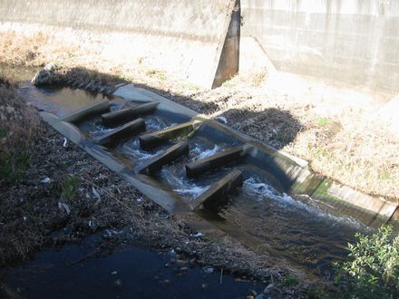 河川の規模からすると、堰がずいぶん多い川です。魚道もそれなりに試行錯誤しているようですが、肝心要の最下流域の汚れが…。